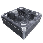 7-osobowa wanna spa o wymiarach 236 x 236 x 95 cm, wyposażone zostało w asiedem miejsc siedzących.