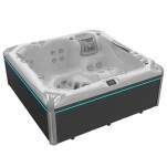 6-osobowa wanna spa o wymiarach 236 x 236 x 95 cm, wyposażone zostało w jedno miejsce leżące i pięć miejsc siedzących.